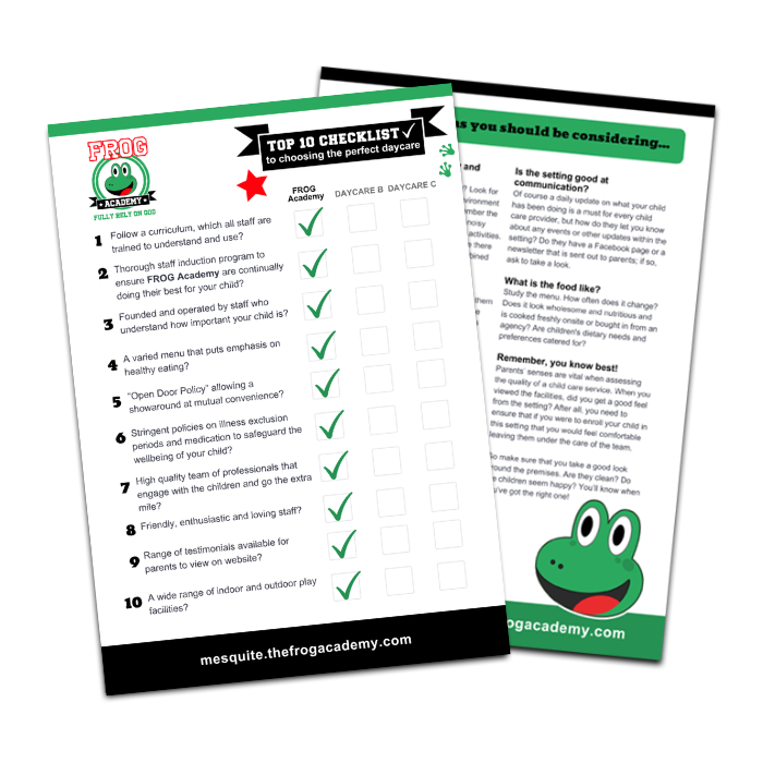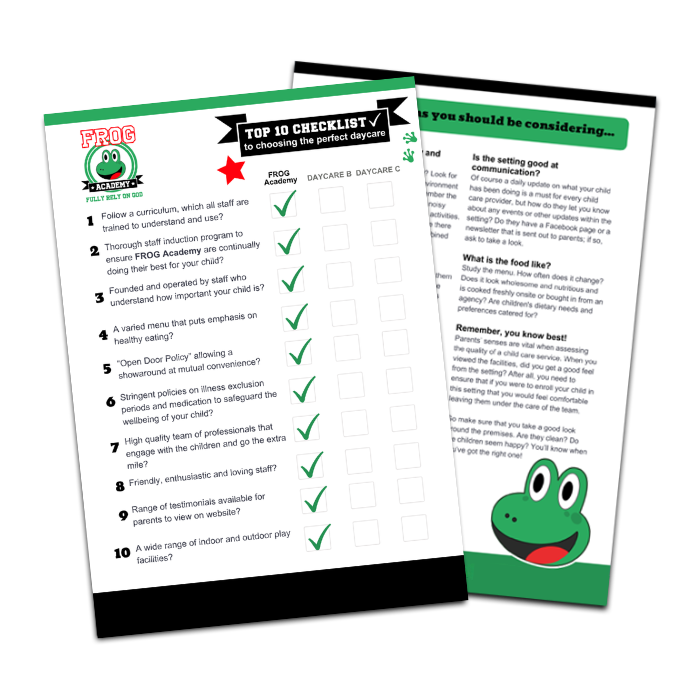 We would love to send you a FREE parent pack, full of helpful information about FROG Academy!